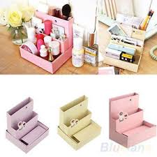 You can find loads of DIYS on make-up storage on youtube and online forums. You can also make your own out of cardboard, paint, sellotape and maybe some pretty ribbon.